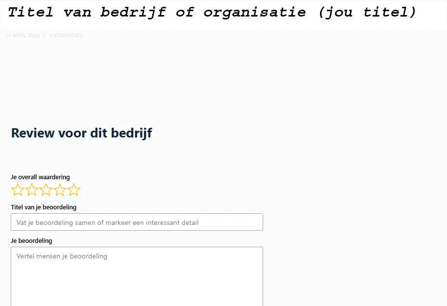 Meestal binnen een dag staat de aangevraagde review bedrijf/ organisatie site online. Het ligt er een beetje aan hoeveel aanvragen er zijn. Het systeem wat we gebruiken is vrij simpel in te stellen.